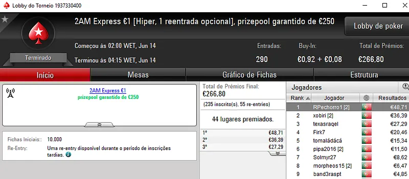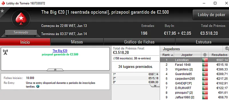 Wgakiters Brilha na PokerStars.pt; Dealerzon Vence The Hot BigStack Turbo €50 & Mais