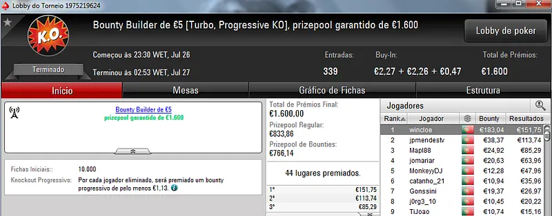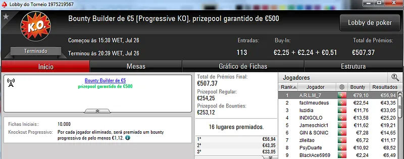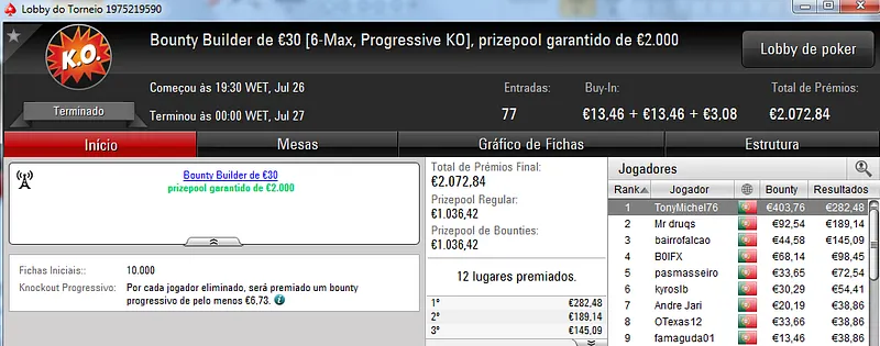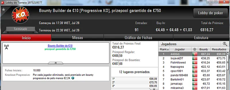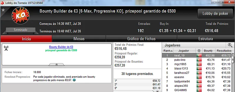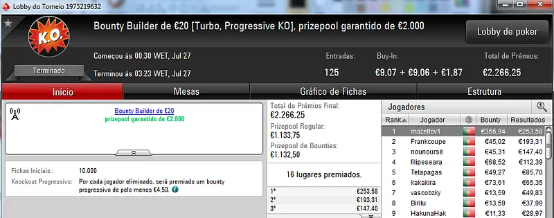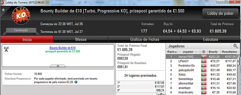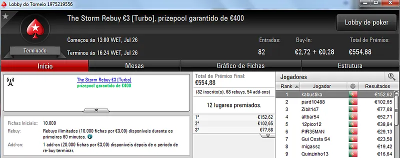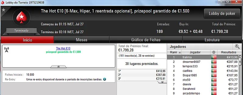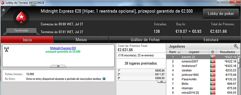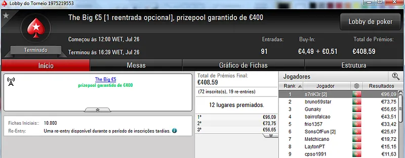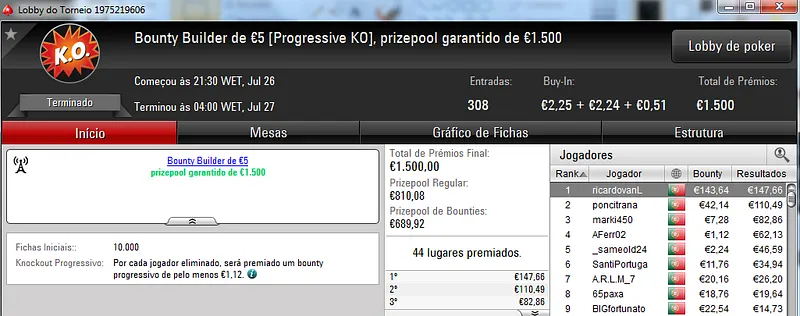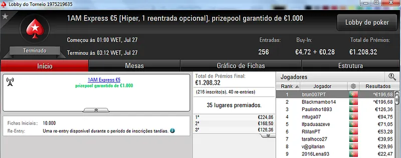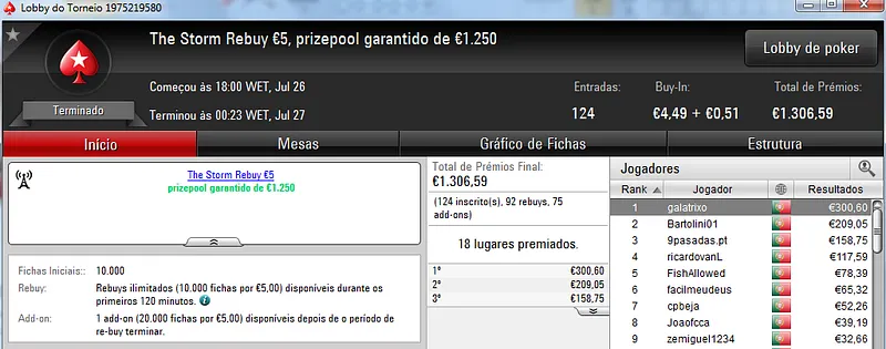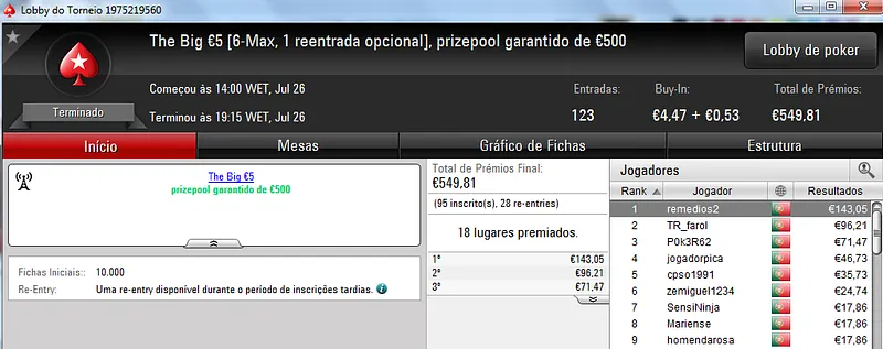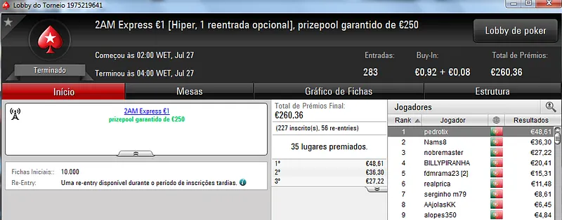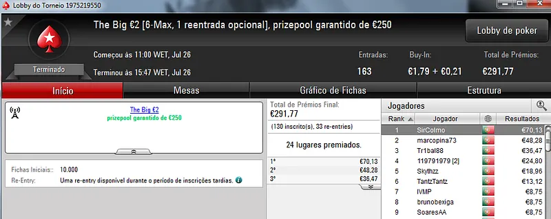 Mais uma sessão em que foram entregues 2 prémios de 4 dígitos na PokerStars.pt.