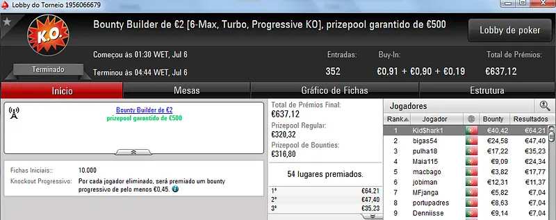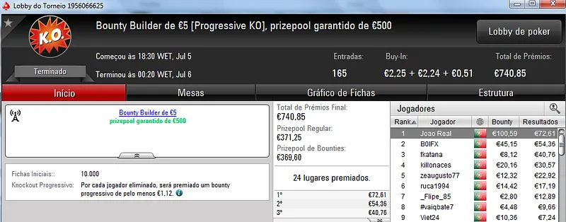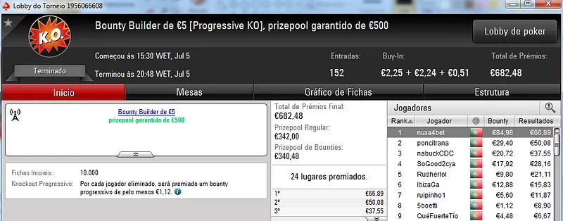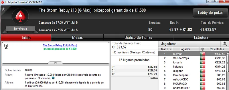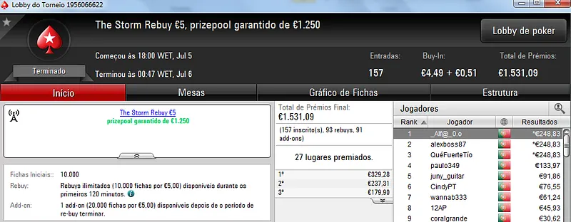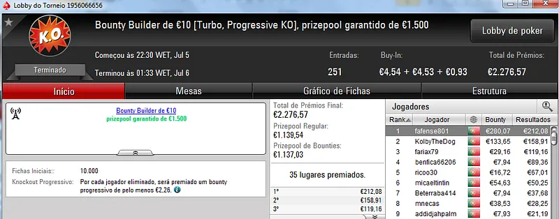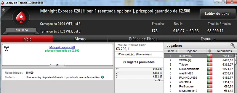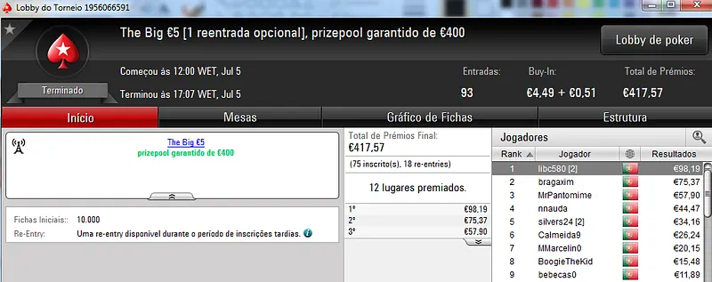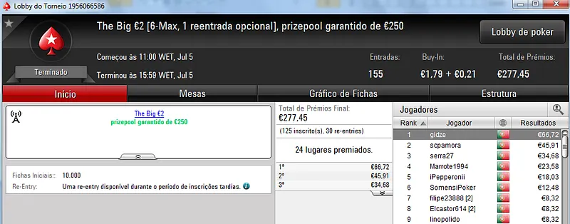 Já Wgakiters ainda ficou em 4 lugar no The Big €20 para levar mais €270 de prémio, €720 no total.