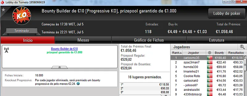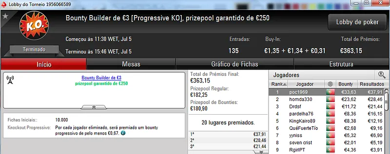 Os cofres da PokerStars.pt continuam a dar que falar nas redes sociais mas nem por isso os torneios têm tido menos adesão. Ontem mais foram entregues mais dois prémios de 4 dígitos na sala lusa.