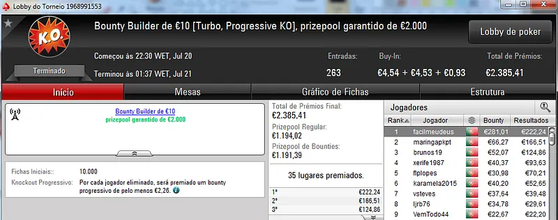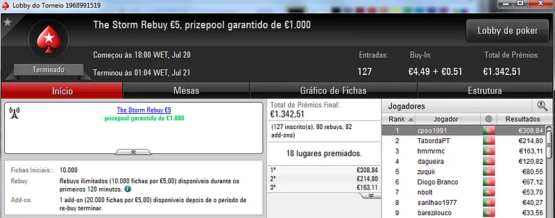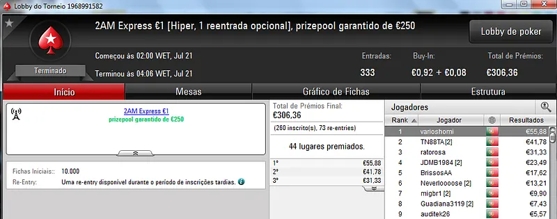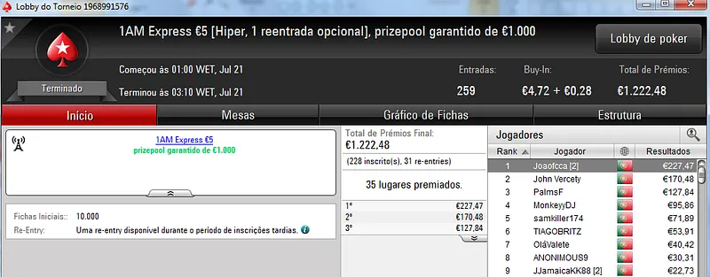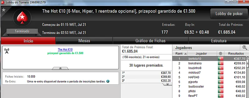 A PokerStars.pt procedeu ao reinicio dos seus servidores e por isso esta sessão teve menos torneios do que o usual.