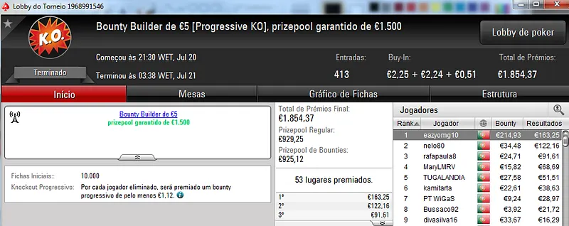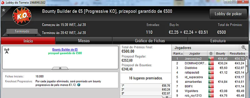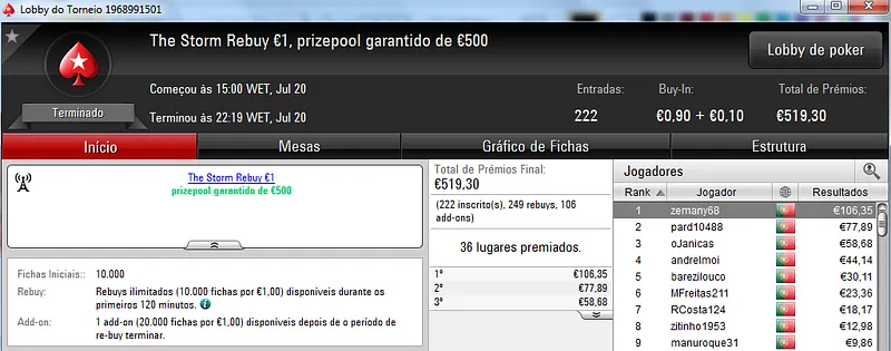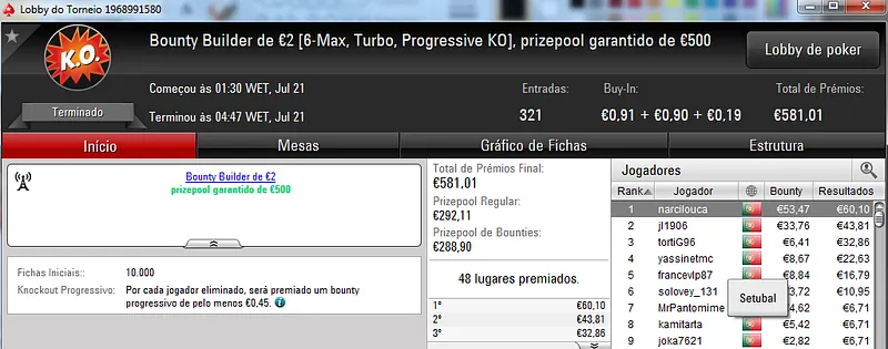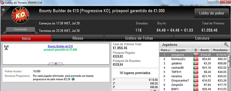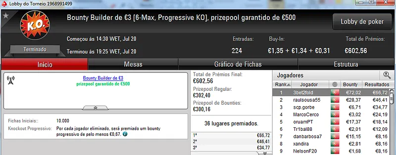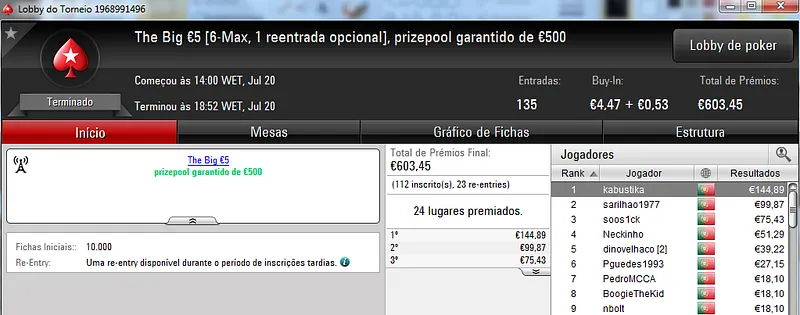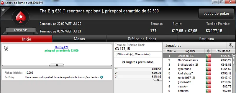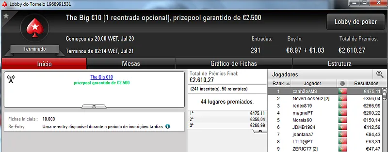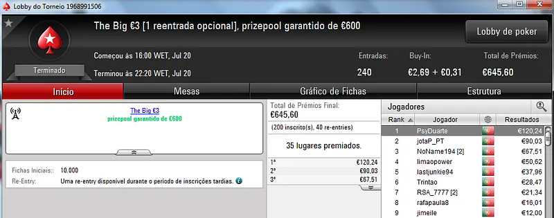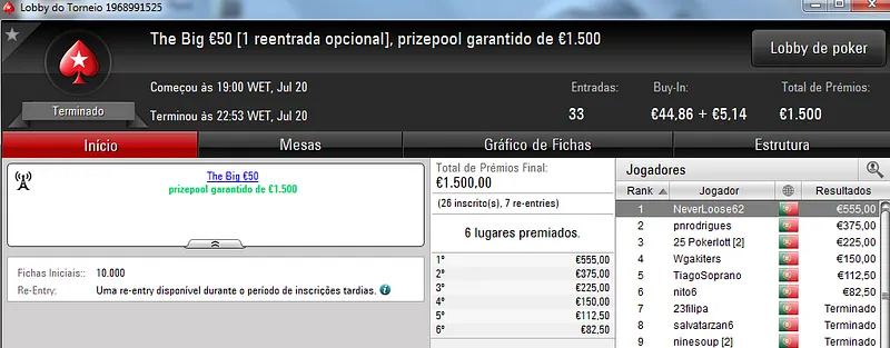 NeverLoose62 dá Show na PokerStars.pt; JJamaicaKK88 Vence The Big €100