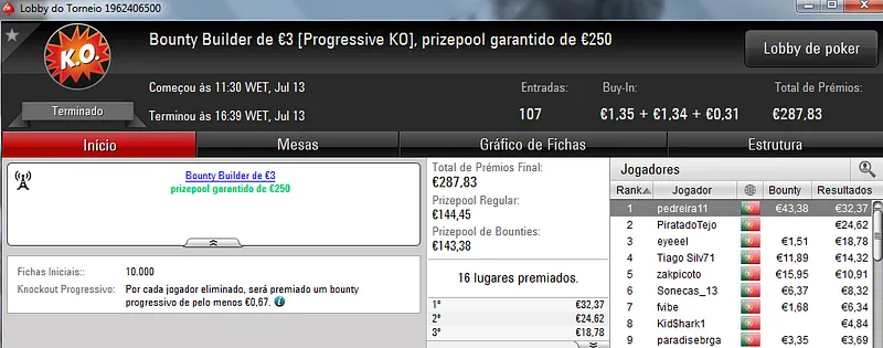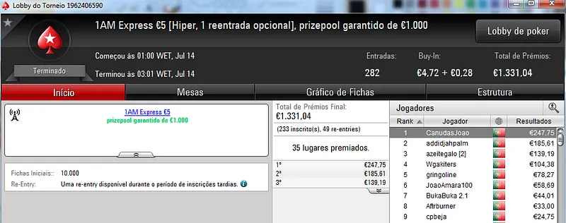Ontem a sessão de poker online foi concorrida e a PokerStars.pt entregou 3 prémios de 4 dígitos a jogadores nacionais.
