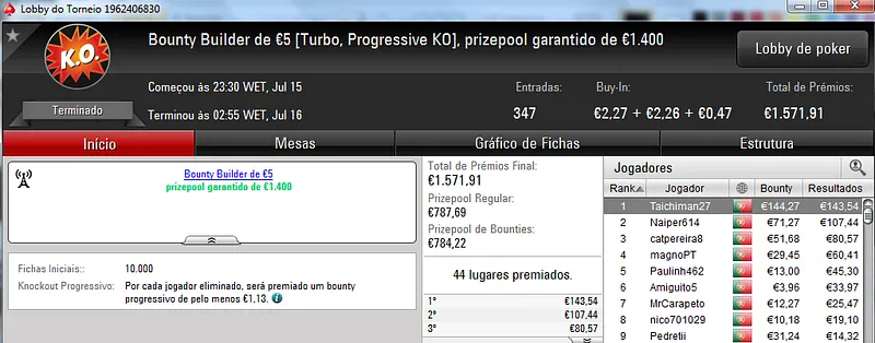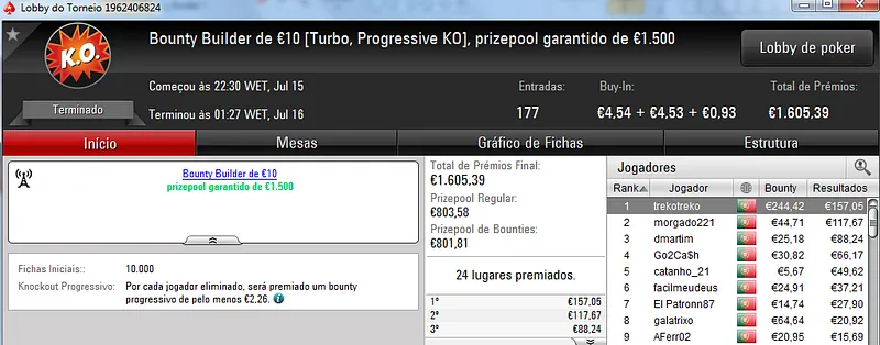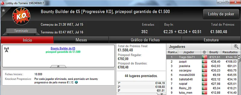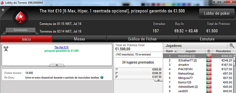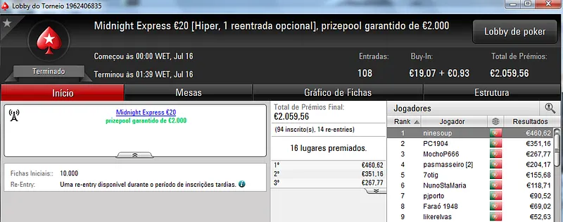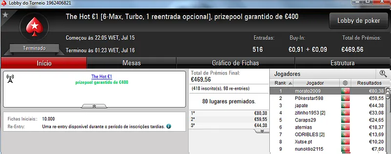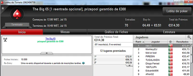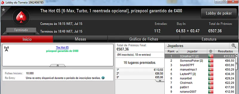 Normalmente a sessão de sábado na PokerStars.pt costuma ser mais fraca que o habitual e ontem não foi excepção. A sala da espada vermelha voltou a não entregar nenhum prémio da ordem dos 4 dígitos.