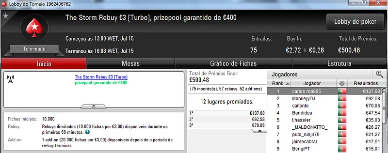 TELMO10NN, Xaneta7 e NãoTeAtrevas Faturam na PokerStars.pt