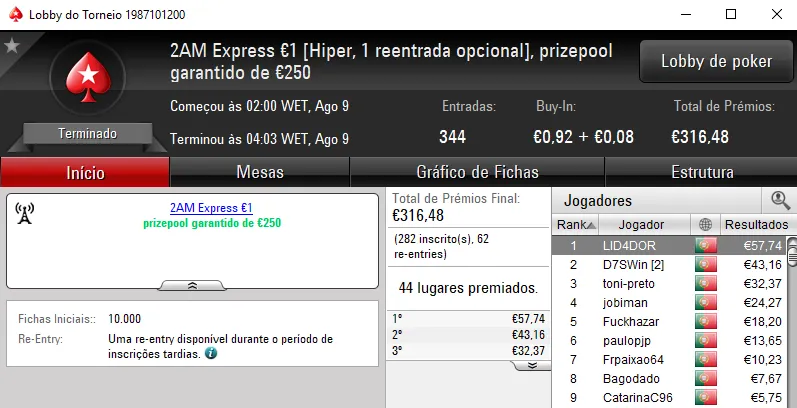 As terças-feiras são bastante concorridas e ontem assistimos a mais uma sessão cheia de bons prémios na PokerStars.pt. No total 5 prémios de 5 dígitos foram entregues pela sala de poker online nacional, mas houve quem amealhasse prémios dessa ordem em vários torneios.