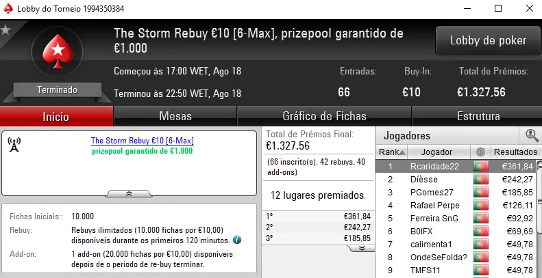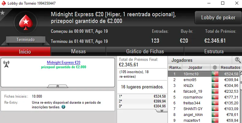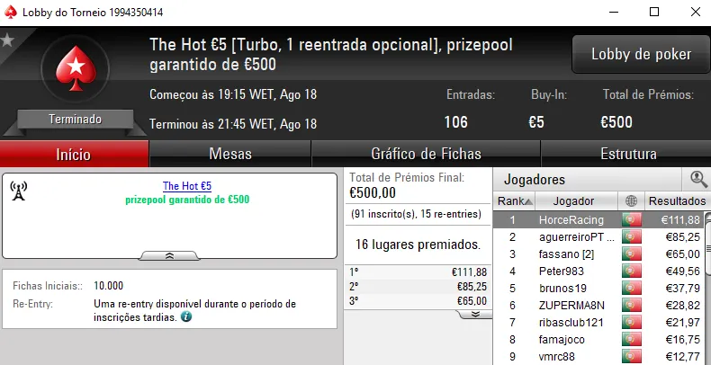 As mesas da PokerStars.pt voltaram a estar pouco concorridas na sessão de ontem e assistimos mais uma vez à entrega de apenas um prémio de 4 dígitos.