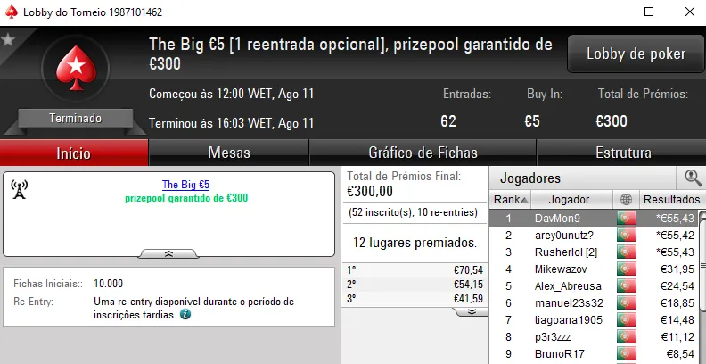 Tribetes 10 em Grande Forma e TMelo08 vence o The Big €100