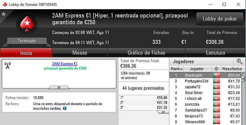A sessão de ontem fica marcada pela entrega de mais 2 prémios de 4 dígitos na PokerStars.pt.