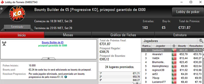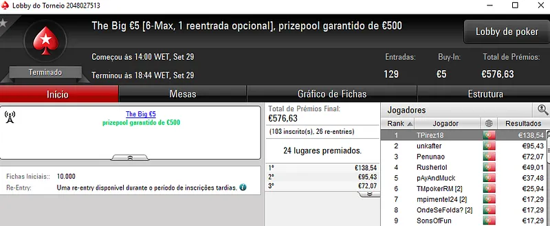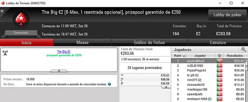 A PokerStars.pt foi palco de mais duas conquistas acima dos mil euros ontem à noite. O The Hot BigStack Turbo €50 e o The Big €100 foram os torneios que brindaram os jogadores com esses prémios.