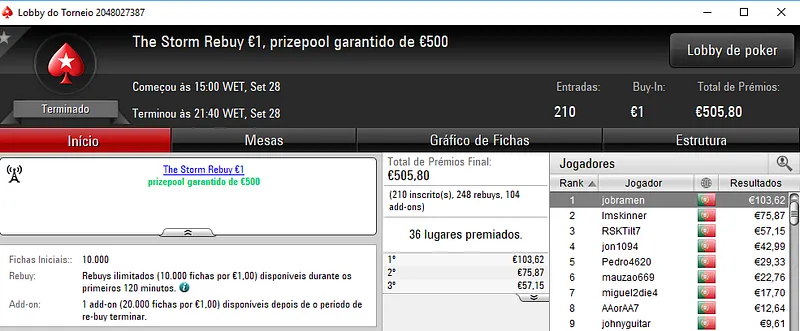 A PokerStars.pt continua a distribuir prémios de quatro dígitos e ontem foram entregues mais dois prémios acima de mil euros.