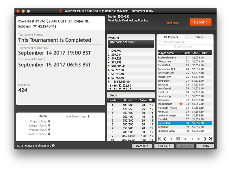 Pedro Marques quis fazer o triplete e também chegou aos 4 dígitos no Powerfest da Partypoker. Hanzookid foi 38º no Evento #176 High Roller e recebeu $1.356 perfazendo um saldo total de $3.405.