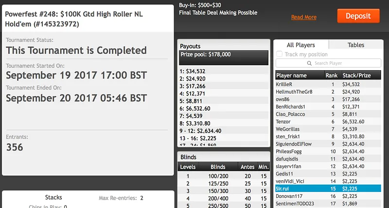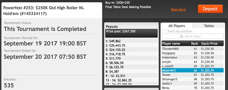 O maior foi no Evento #247 do qual Pedro "HanzooKid" Marques foi vice-campeão. O torneio contou com 960 entradas o que formou um prize pool de $96.000. Marques quase batia todos os oponentes e levava a maior fatia mas, infelizmente, foi derrotado no heads-up por OMGpourvu (1º - $16.780). Ainda assim, o Português embolsou $11.980 que juntará aos excelentes resultados que tem alcançado.