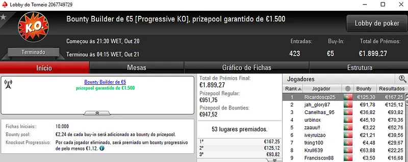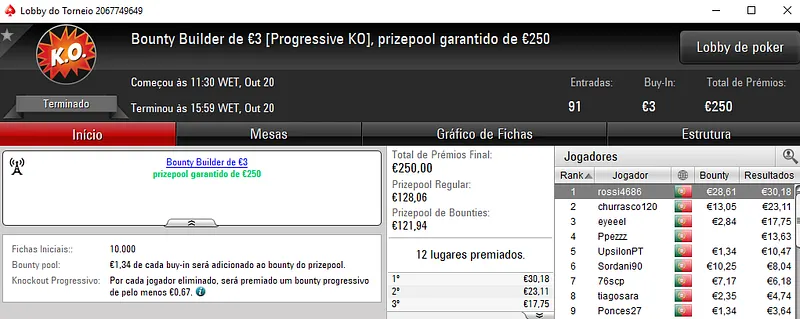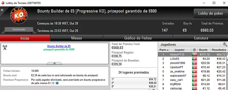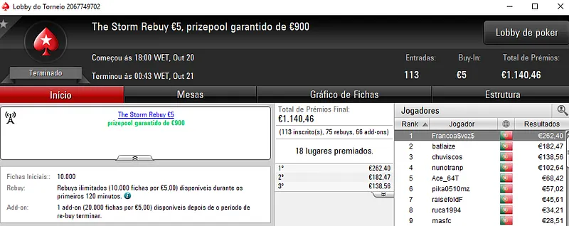 €1,178 para KeyzerSozePT e €1,110 para Jgrhajsj na PokerStars.pt