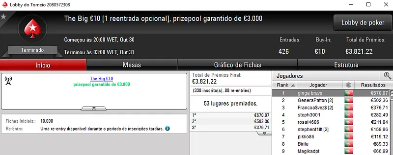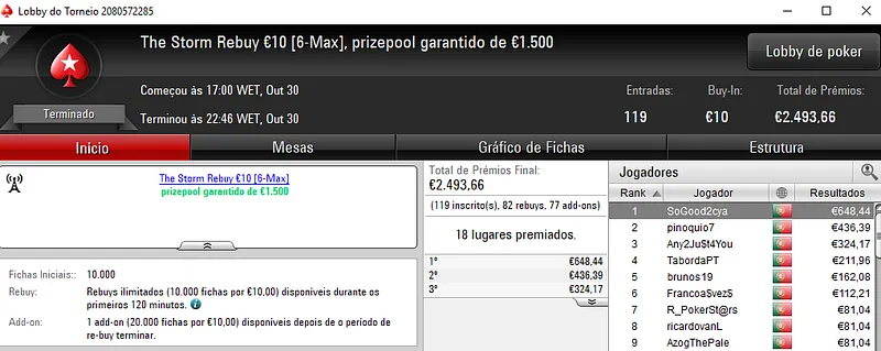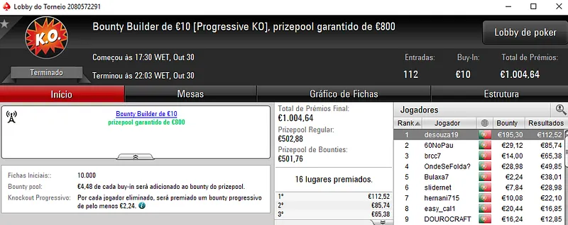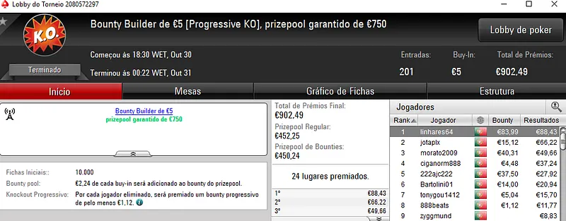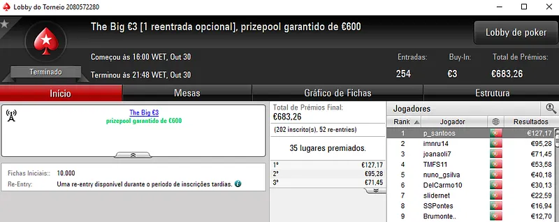 PokerStars.pt: Any2Ju$t4You, tribetes10, bruxadodark e NPASSANADA# com 4 dígitos