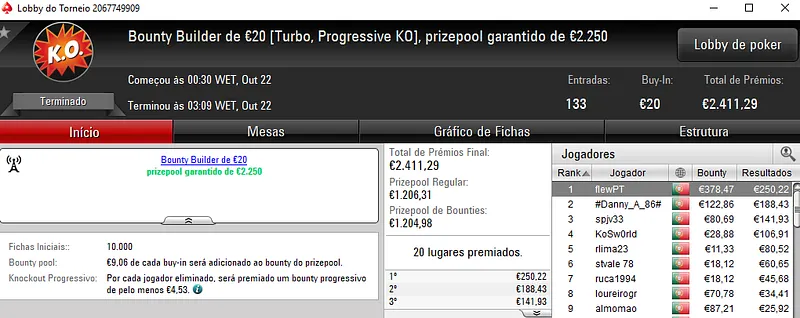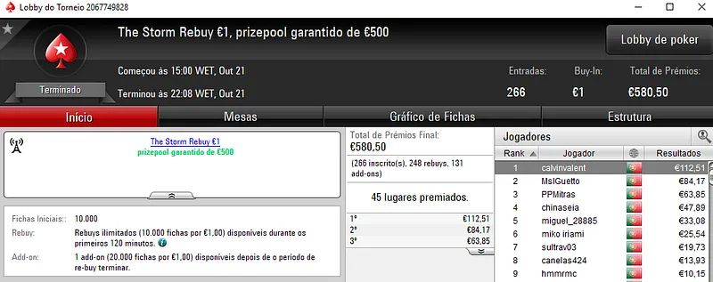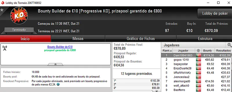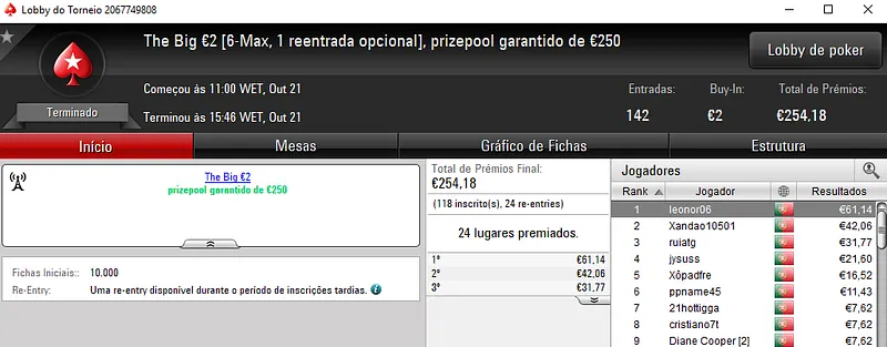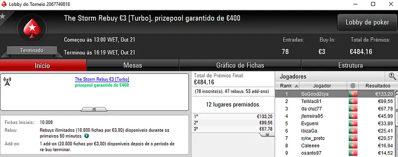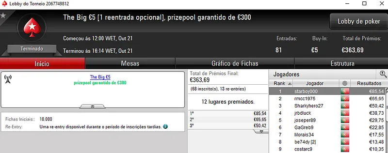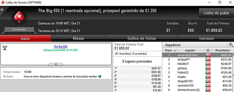 Mais uma sessão pautada por mais dois prémios de 4 dígitos entregues pela sala de poker online nacional, a PokerStars.pt.