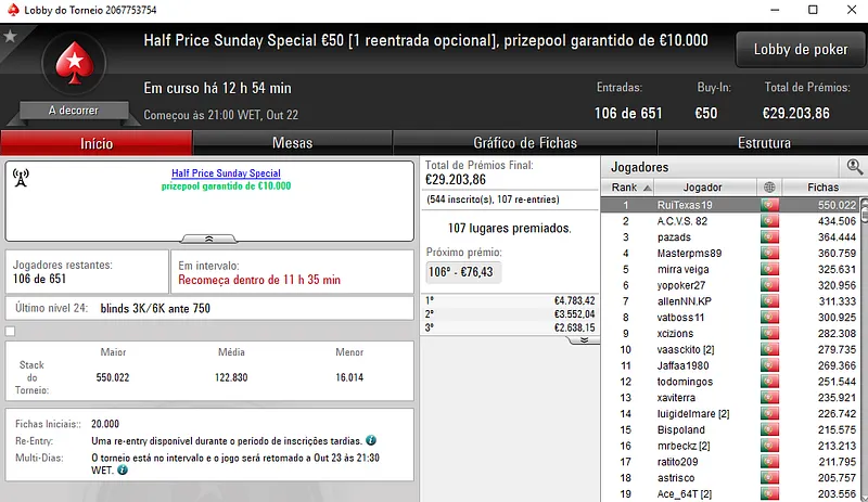 Hoje realiza-se o dia 2 do Half Price Sunday Special €50 e do Half Price Sunday Storm €5, em jogo estão mais de €42 mil.
