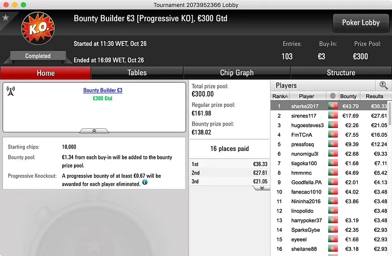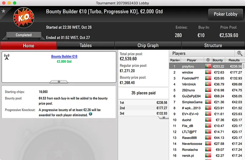 A PokerStars.pt voltou a entregar dois prémios de 4 dígitos aos jogadores lusos e foi nos torneios habituais que tal aconteceu.