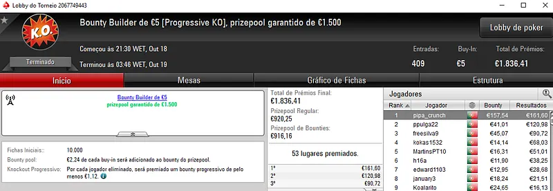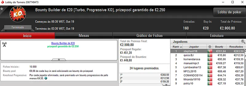Prey223 Trinfou no The Hot BigStack Turbo €50 e Whitequality Vence The Big €100