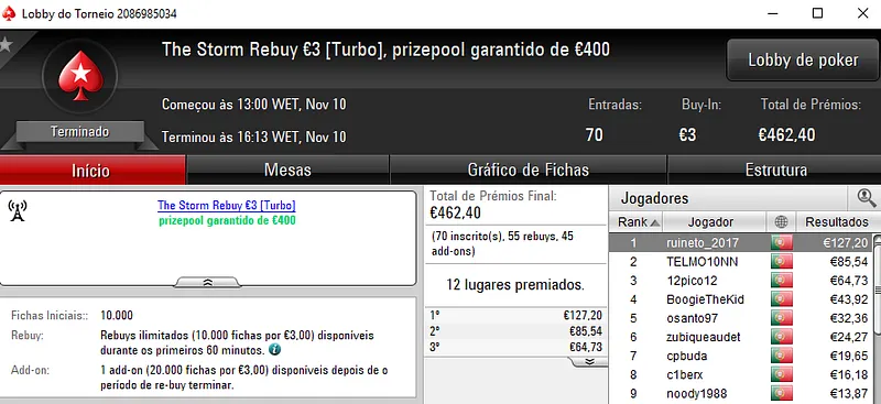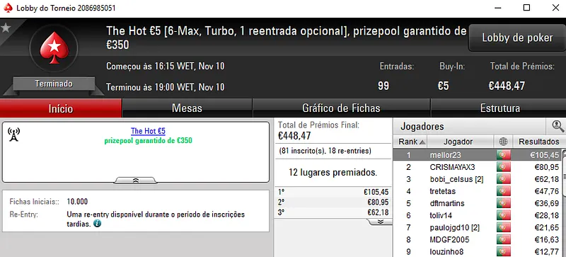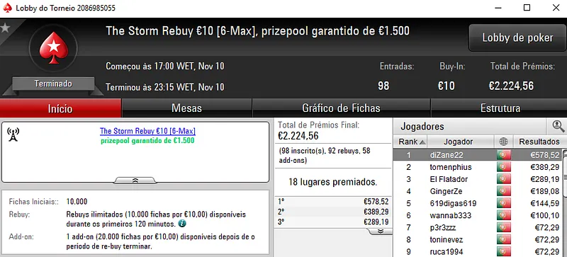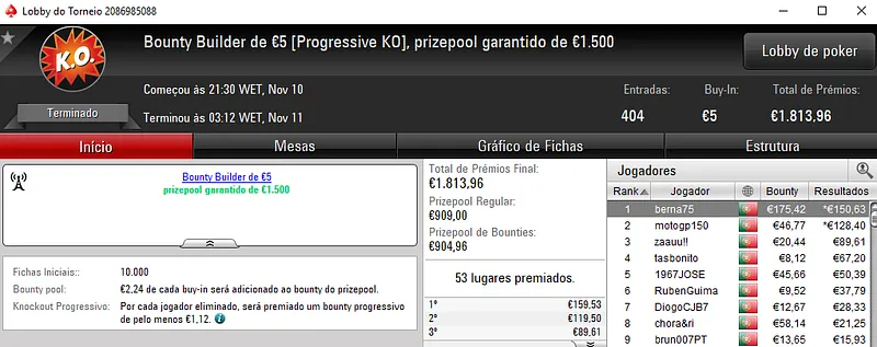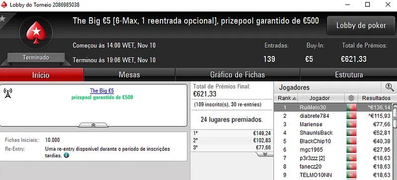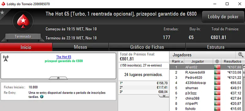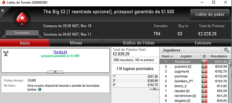 A sessão de sexta-feira viu serem entregues mais 3 prémios de 4 dígitos pela sala de poker online nacional.Como de costume os prémios foram entregues nos dois maiores torneios da PokerStars.pt, o The Hot BigStack Turbo €50 e no The Big €100.