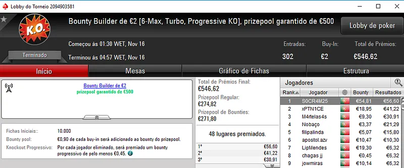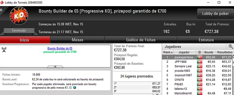 A sessão de ontem de poker online na PokerStars.pt ficou marcada pelos overlays em muitos dos principais torneios diários da sala. Assim, foram entregues 4 prémios de 4 dígitos no The Hot BigStack Turbo €50 e no The Big €100.