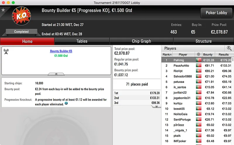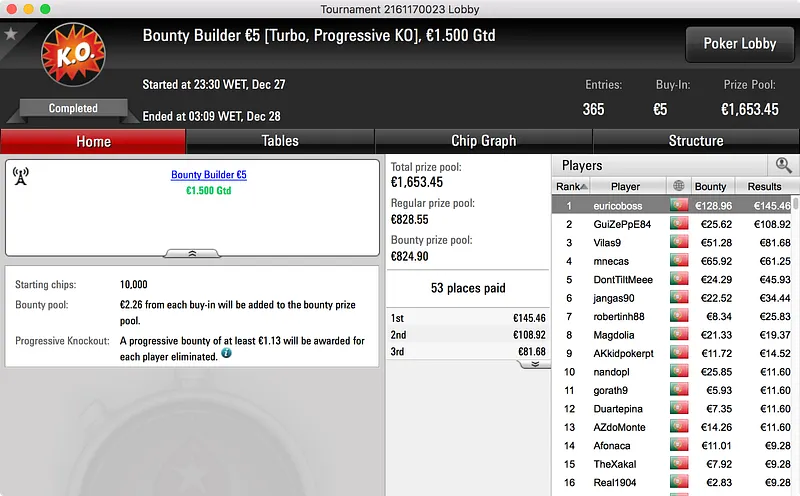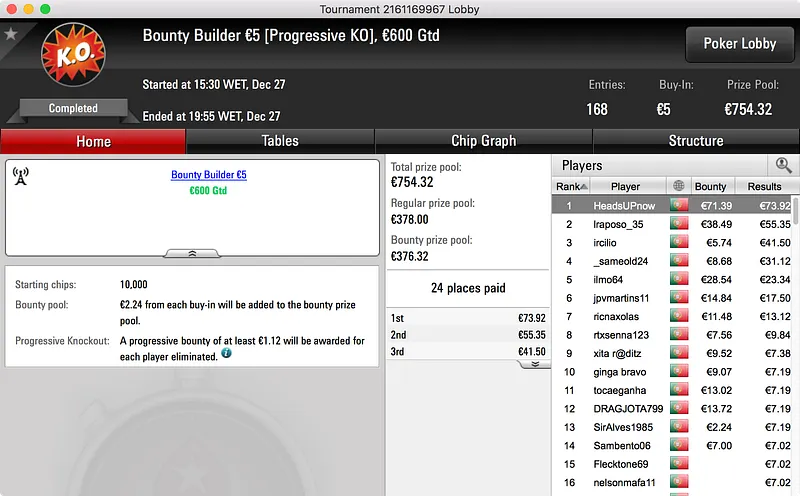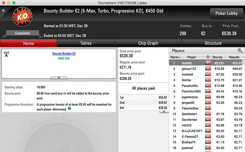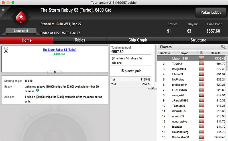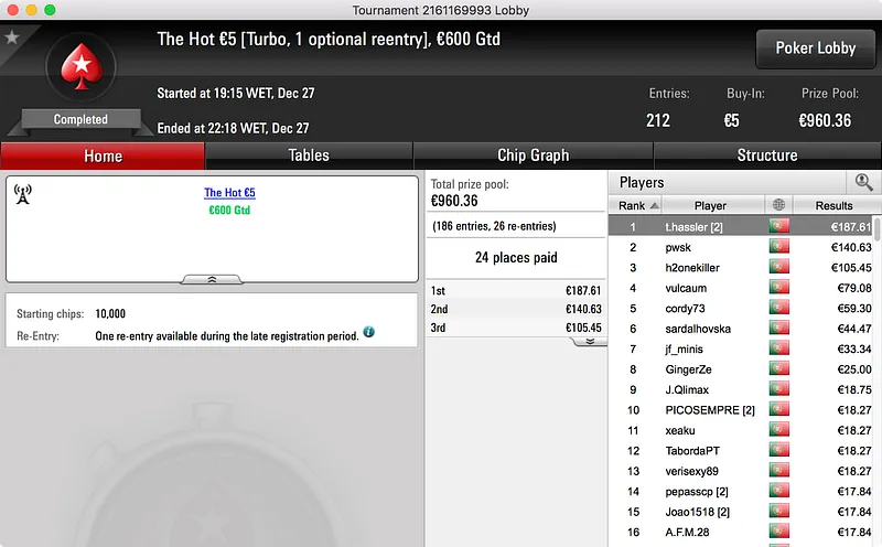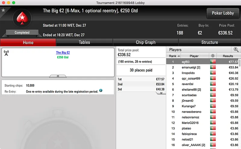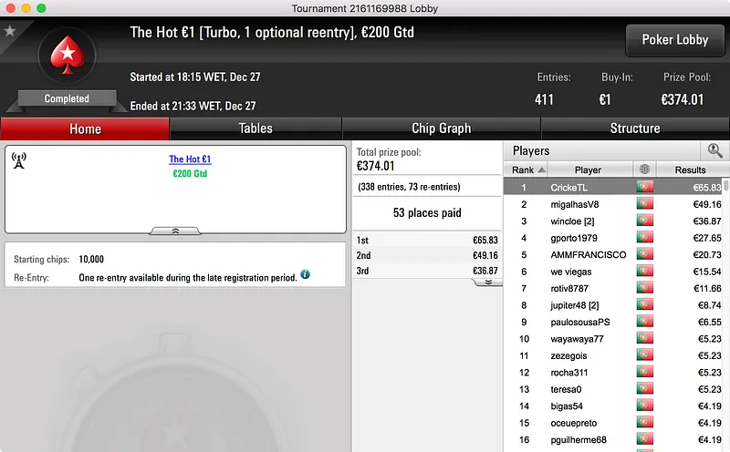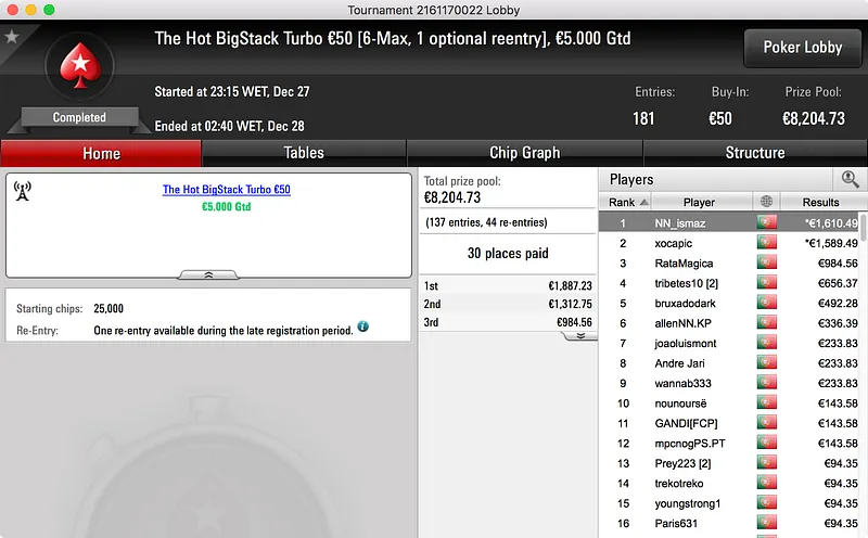 Foi no Hot BigStack Turbo €50 que NN_ismaz saiu vencedor, após bater xocapic heads-up. O torneio contou com um field de 181 entradas, o que fixou o prize pool nos €8.204, valor que foi dividido por 30 jogadores. Foi após 3:25h de muito poker que ambos os finalistas chegaram a acordo heads-up existindo, assim, pouca diferença entre os valores que ambos embolsaram. xocapic caiu na segunda posição e levou €1.589 e NN_ismaz ficou a ocupar o primeiro lugar do pódio, adicionando €1.610 à conta.