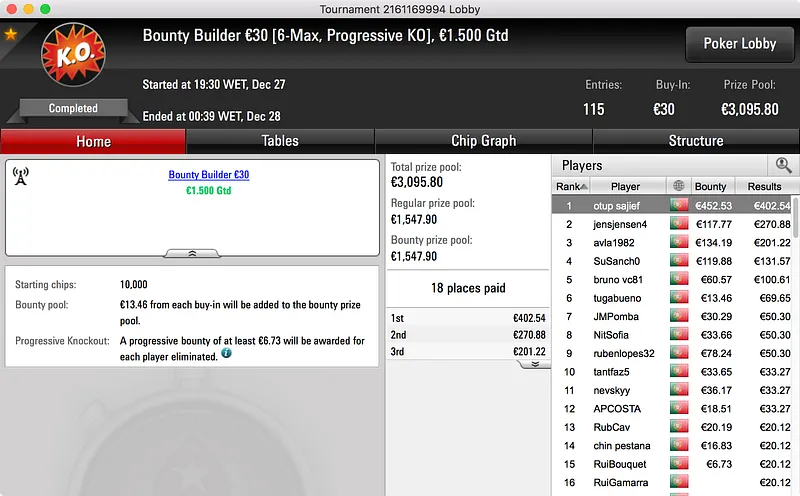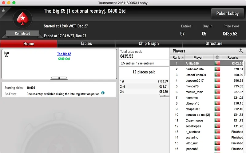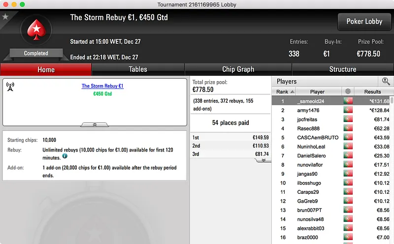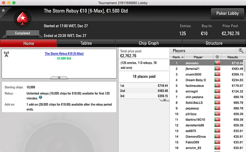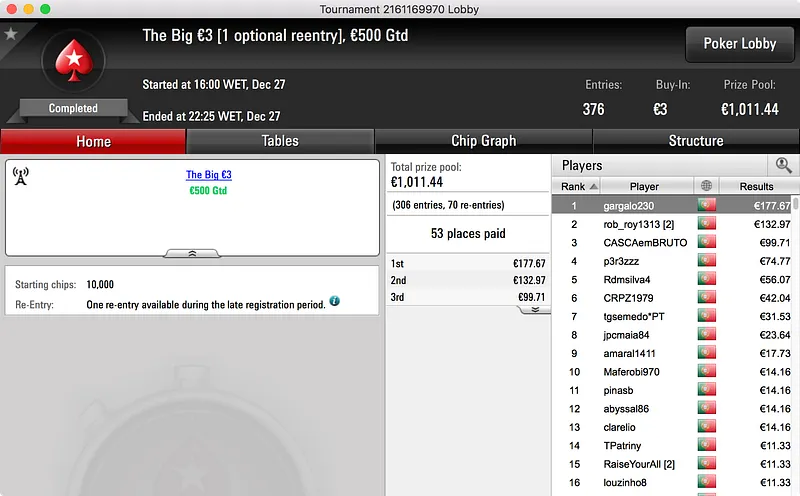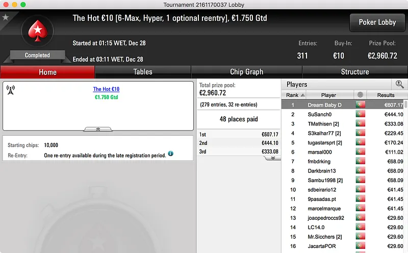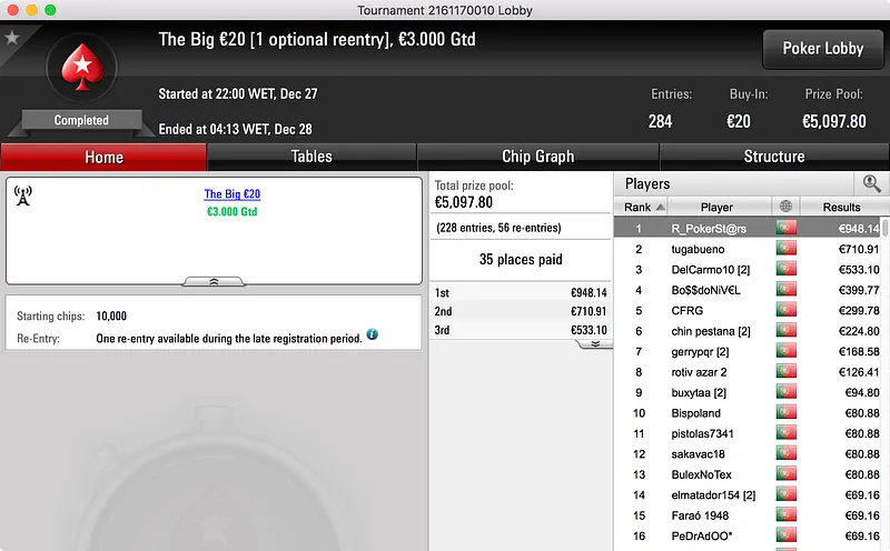 Apesar de estarem a decorrer as WinterSeries, os torneios regulares na PokerStars.pt não param e vimos mais um prémio de 4 dígitos ser entregue durante o dia de ontem.