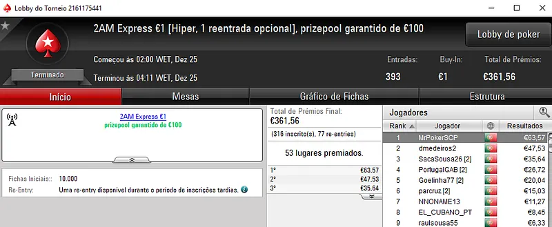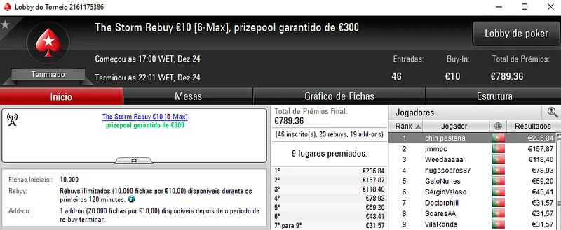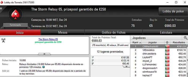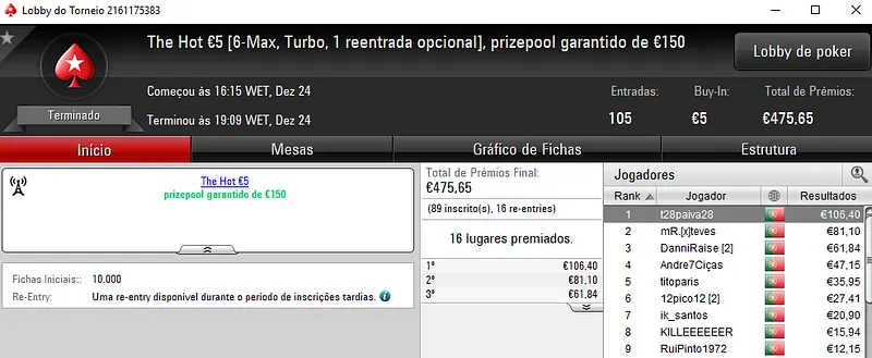 Mesmo em dia de consoada houve poker online na PokerStars.pt, mas como era de esperar não foram muitos os jogadores ontem presentes nas mesas.