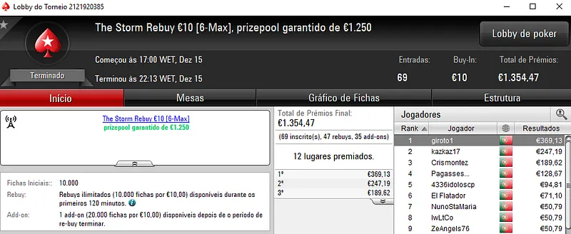 A sessão de poker online de sexta-feira trouxe mais dois jogadores premiados com valores acima dos mil euros pela sala de poker online nacional.