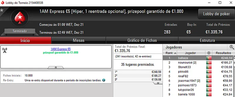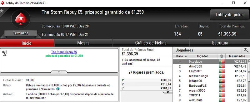 De regresso à normalidade, a PokerStars.pt entregou ontem dois prémios de 4 dígitos. Os torneios do dia foram o The Hot BigStack Turbo €50 e o The Big €100, onde foram registados os maiores prémios.