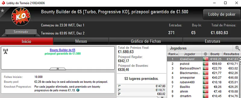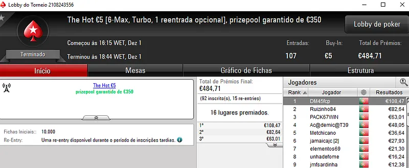 Com a divisão de prémios realizada no The Hot BigStack Turbo €50, três jogadores saíram ontem da PokerStars.pt com prémios acima dos mil euros. Conhece aqui todos os vencedores de mais uma sessão de poker online.