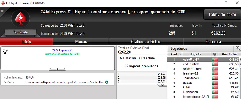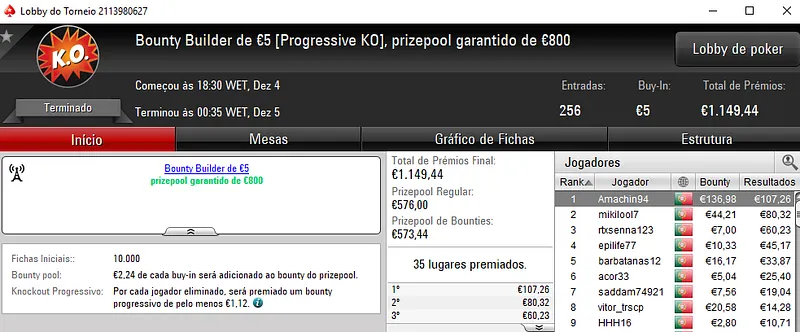 Com a conclusão do Half Price Sunday Special €50 e do Half Price Sunday Storm €5 foram entregues mais 10 prémios de 4 dígitos pela sala de poker online nacional, a PokerStars.pt.