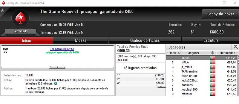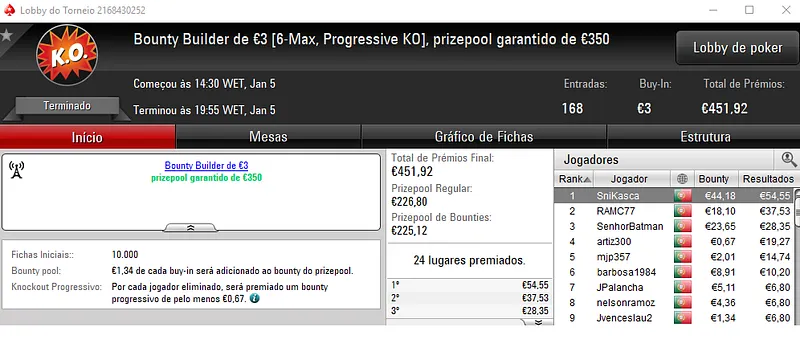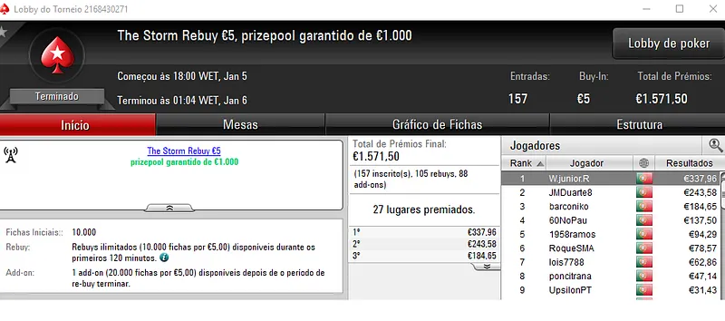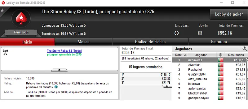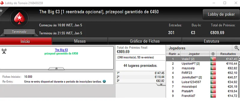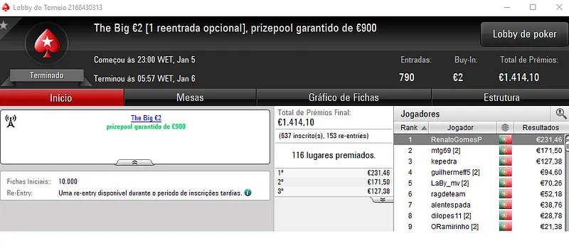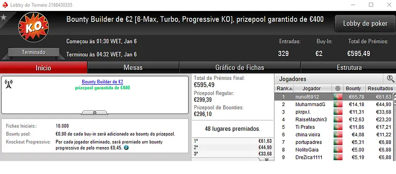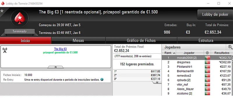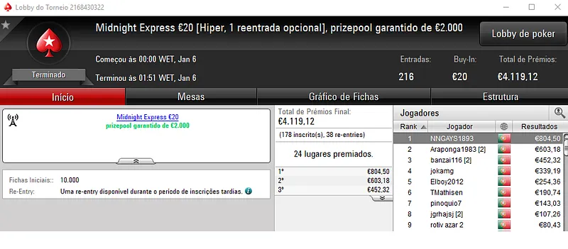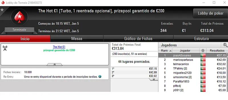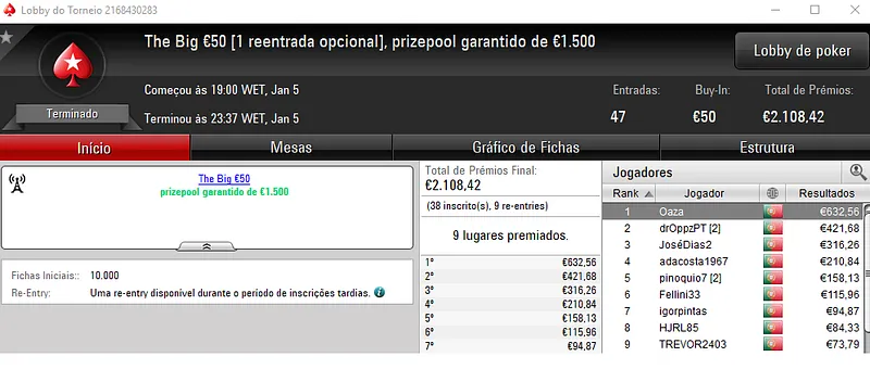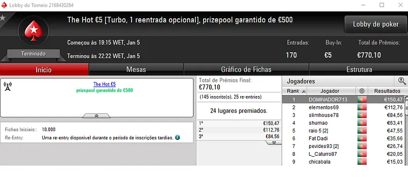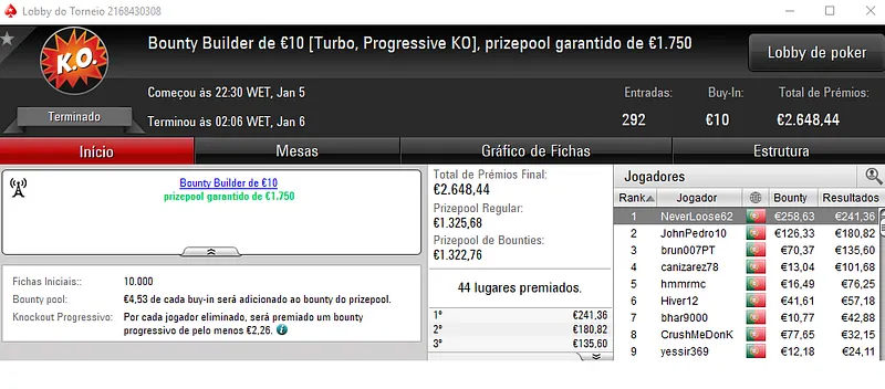 PokerStars.pt: NeverLoose62 Conquista The Hot BigStack Turbo €50