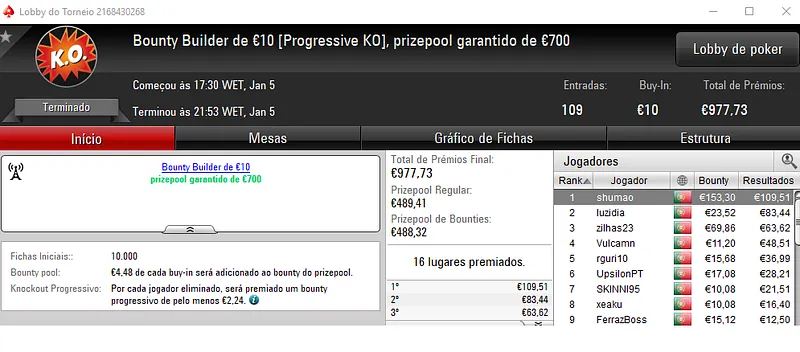 A sexta-feira trouxe mais dois prémios de 4 dígitos para os jogadores nacionais na PokerStars.pt.