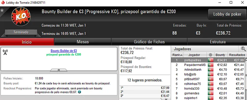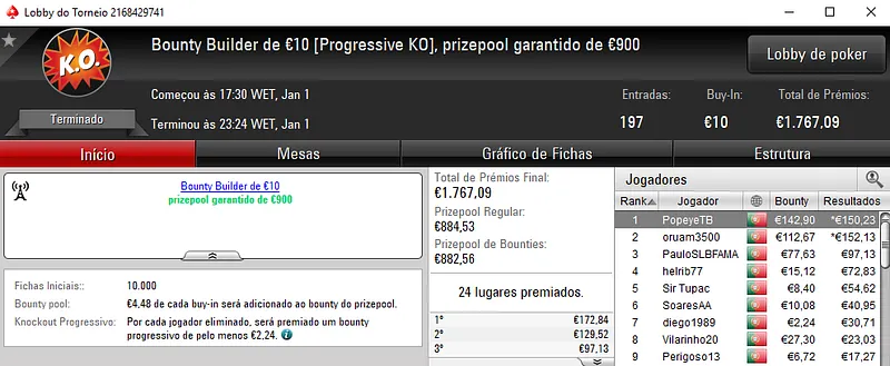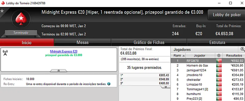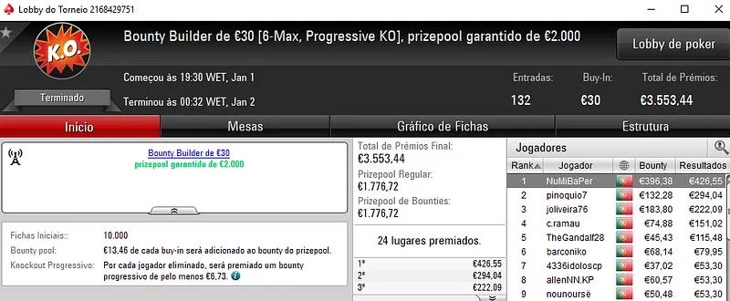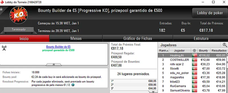 O ano novo trouxe mais ação à PokerStars.pt e ontem assistimos à entrega de 4 prémios de 4 dígitos pela sala de poker nacional. Como já é costume o The Hot BigStack Turbo €50 foi o centro das atenções, mas o The Big €20 foi a surpresa ao entregar um prémio acima dos mil euros ao campeão.
