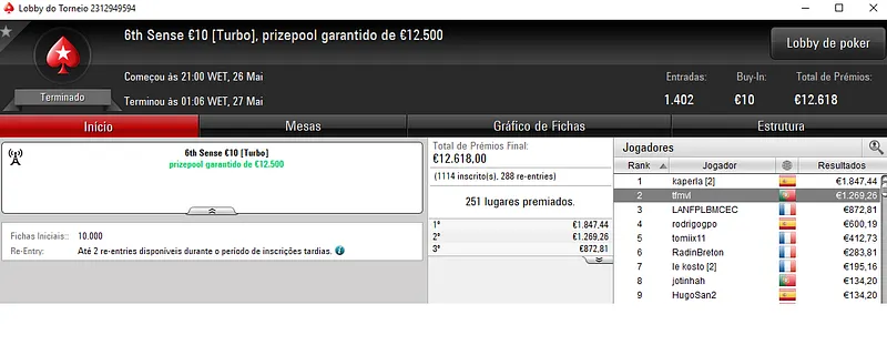 A sessão de ontem foi de preparação para o ataque aos grandes prize pools de domingo e vários jogadores nacionais arrecadaram prémios e conquistas nos principais torneis da sala do mercado partilhado, a PokerStars.frespt.