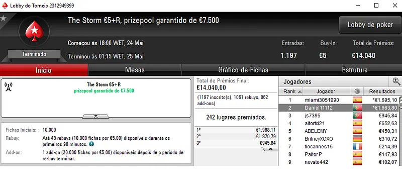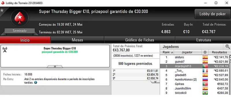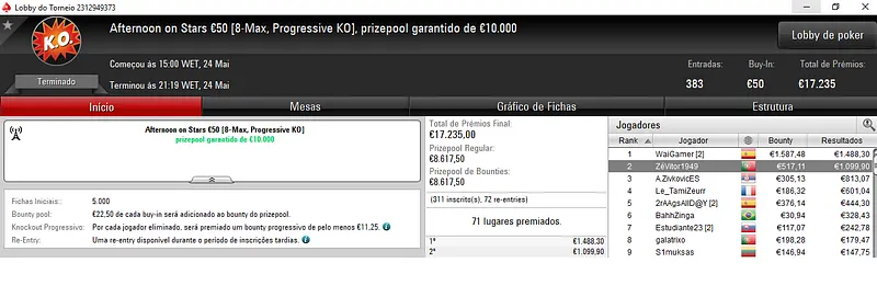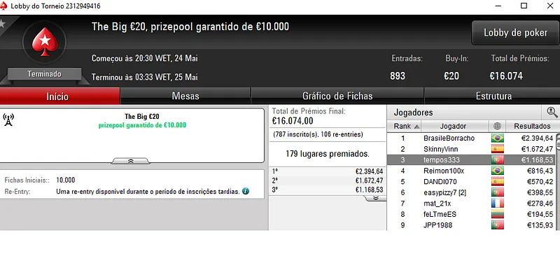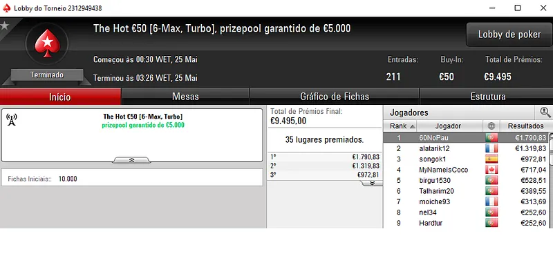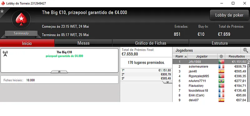 Outros Resultados na PokerStars.pt: