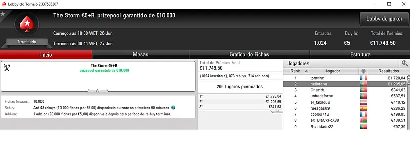 Outros Resultados na PokerStars.pt: