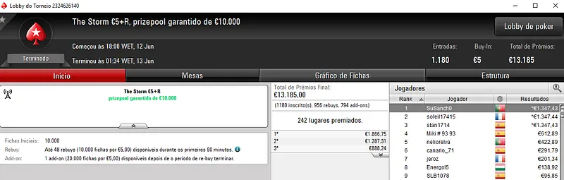 Outros Resultados na PokerStars.pt: