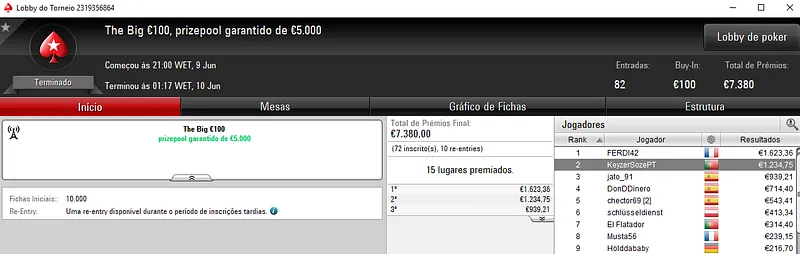 Outros Resultados na PokerStars.pt: