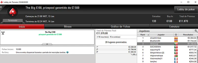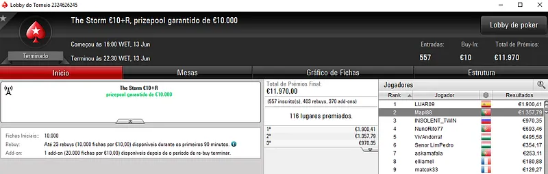 O grande resultado de destaque de ontem foi a vitória de otup sajief no Progressive KO €50 com 517 entradas. Este evento teve um prize pool acumulado de €23,265 e o jogador luso embolsou €3,399, entre prémio e bounties.