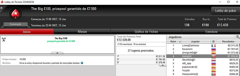 Com o fim das TRIO Series, os torneios regulares da PokerStars.FRESPT não tiveram tanta participação como é habitual. Mas mesmo assim vários jogadores lusos conseguiram prémios de 4 dígitos na sala de poker da espada vermelha.