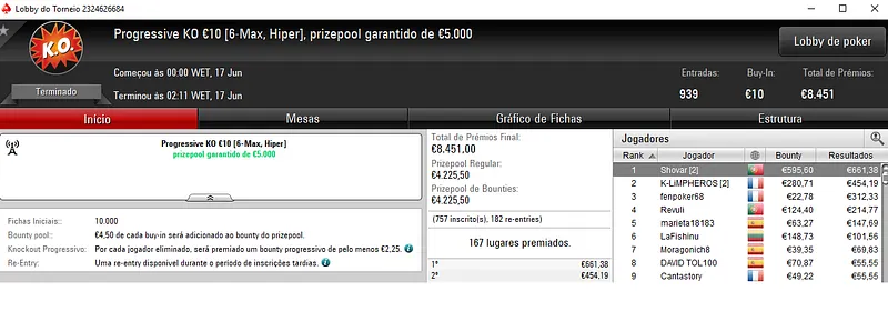 Outros Resultados na PokerStars.pt: