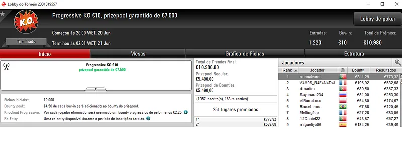 Outros Resultados na PokerStars.pt:
