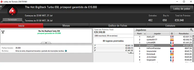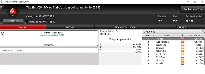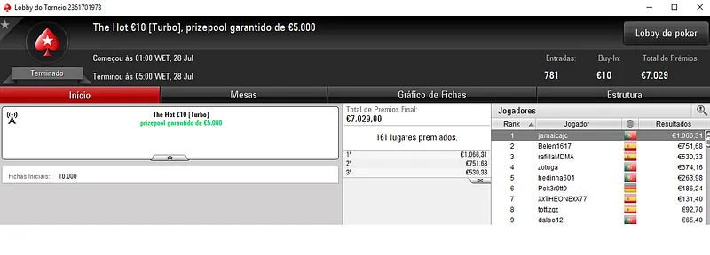 Resultados na PokerStars.pt: