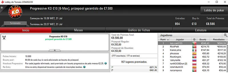 Resultados na PokerStars.pt: