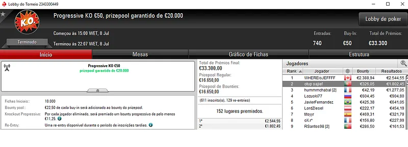 Este não foi o único prémio de KeyzerSozePT que ainda acrescentou €965 pelo quarto posto no Sunday Progressive KO €20.