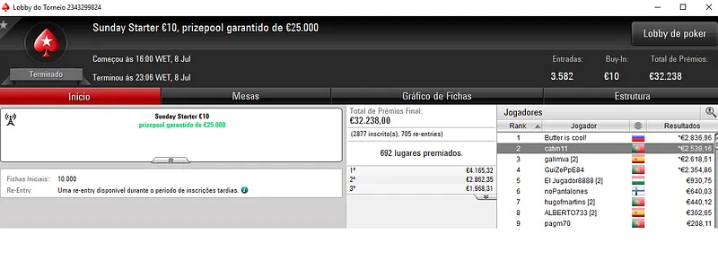 KeyzerSozePT foi um desses casos. O jogador luso foi o nosso melhor representante no Sunday High Roller €250 com 247 jogadores e €57,427 de prize pool. A medalha de bronze valeu €5,812 a KeyzerSozePT, que ainda viu dregaia cair na oitava posição para receber €1,337.