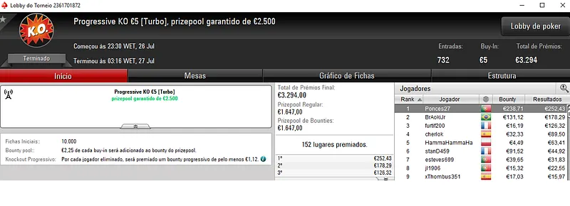 Resultados na PokerStars.pt: