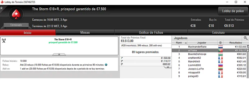 Resultados na PokerStars.pt: